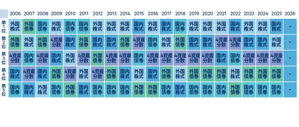 年率平均の収益の振れ幅を⼩さくする効果が期待できます。